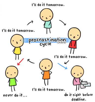 I have Ms. Procrastination sitting on my shoulder and she keeps saying "You can't do it - Its just too hard!!" Or she's saying "I'm too tired".