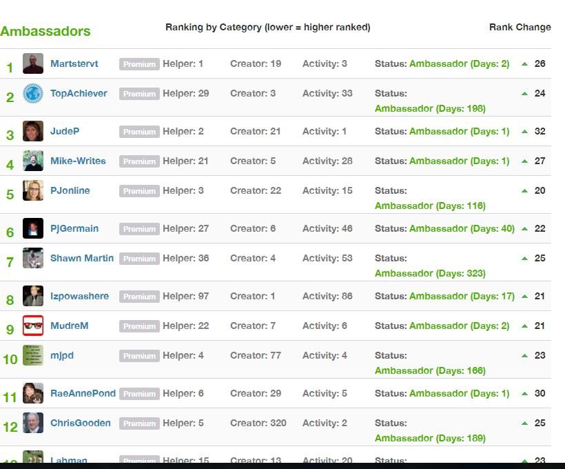 Well taking a look at the top ranked people here at WA indicates a glitch in the ranking system. Kyle, Carson, Jay and many of the long time ambassadors have vanished from the list.