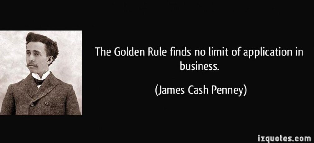 James Cash "J. C." Penney Jr. (1875-1971), was an American businessman who founded the J. C. Penney department stores in 1902. He wrote two books about the golden rule: "My Experience With The Golden Rule," and "Fifty Years With The Golden Rule."