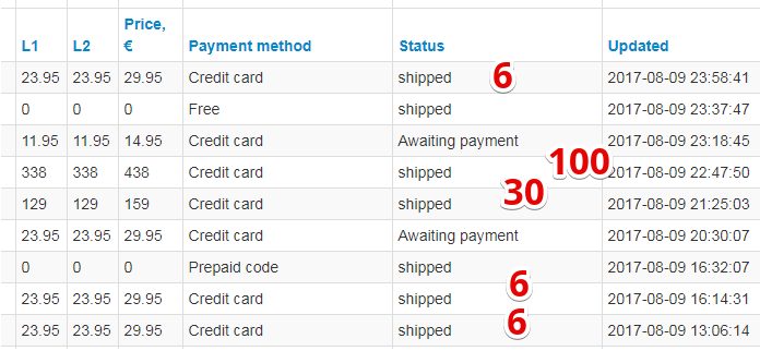 Some big sales on my IPTV subscriptions with one customer signing up for a year and another one signing up for 6 months. Commissions are shown in Euros (red text).