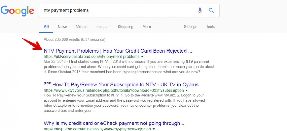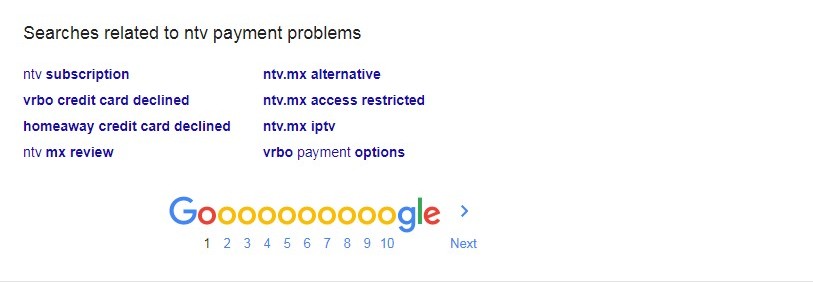 My main KW's for one of my recent posts (this week) was NTV payment problems. You can see from the related searches at the bottom, that people are having credit card problems.