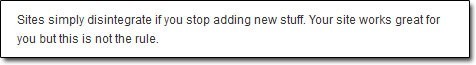 They said "sites simply disintegrate if you stop adding new stuff"...