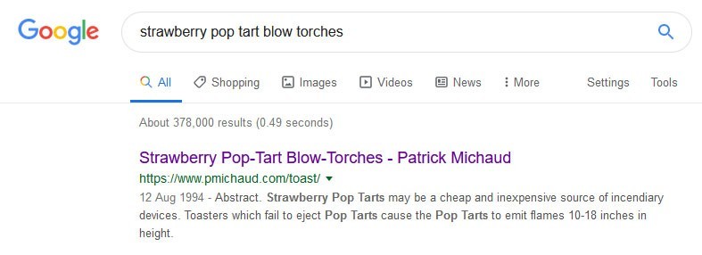 If you search "strawberry pop tart blow torches" in Google you find will find the following result:
