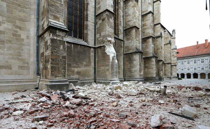 Several buildings have cracked walls and rooftops have been damaged. Zagreb's iconic cathedral has also been damaged and the top of one of its two spires collapsed. The cathedral was rebuilt after it toppled in the 1880 earthquake.