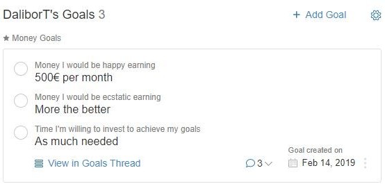 I know I was thinking about what should I wrote as my goals. I haven't had any expectation or knowledge of the potential offered here. I was scared to write a big number, but I also didn't want to put some random small amount.
