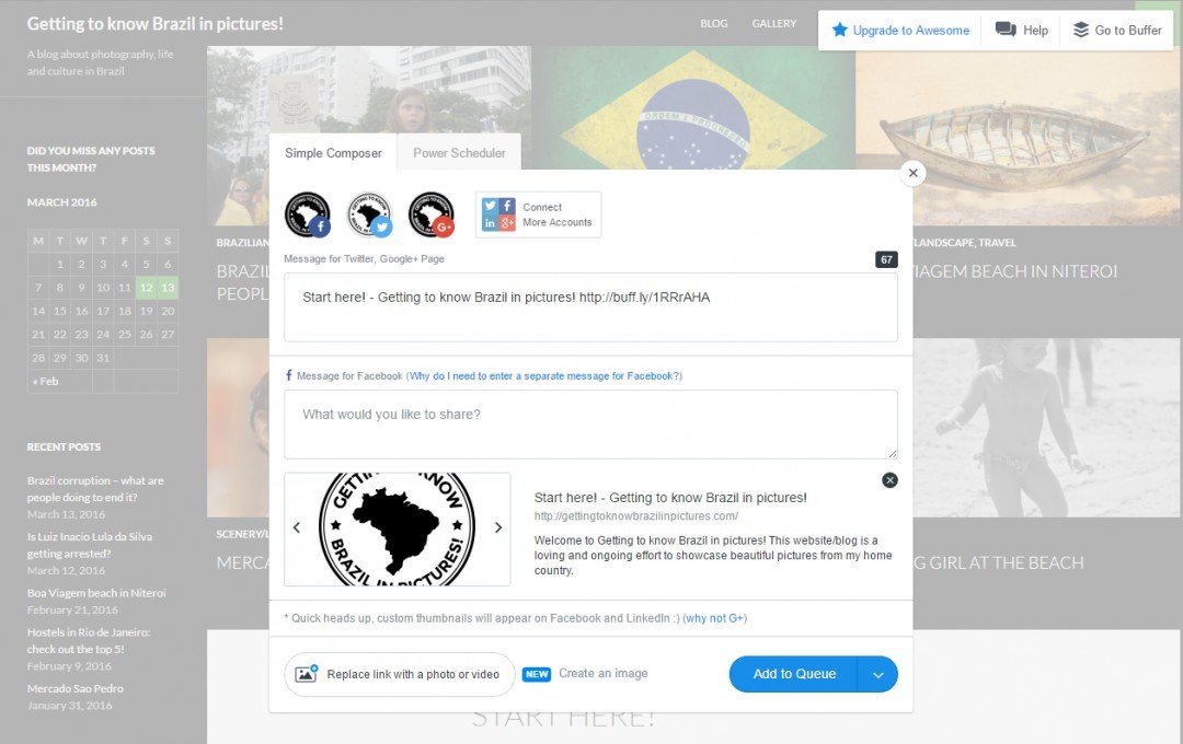 Let's say I have just finished writing a fantastic blog post, with SEO in mind, and it is ready to show its greatness to the world. Publish it and access the link. Once you click on the Buffer button, this is what you are going to get: