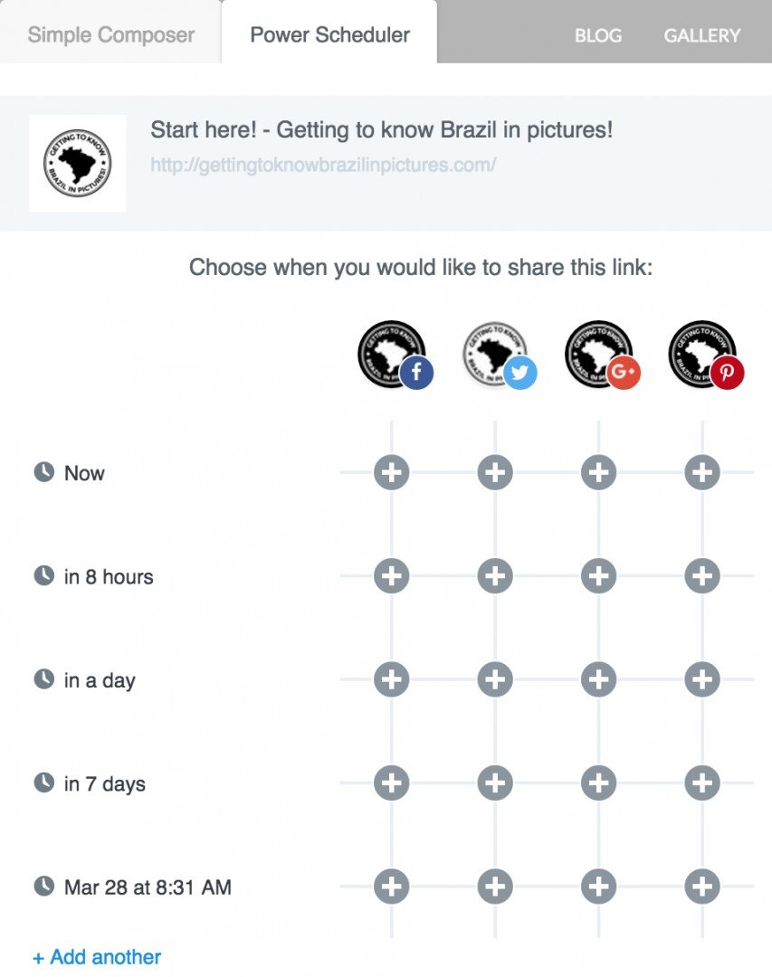 Once you explore the basic options made available by sharing the posts, you can check out the possibilities of the Schedule.