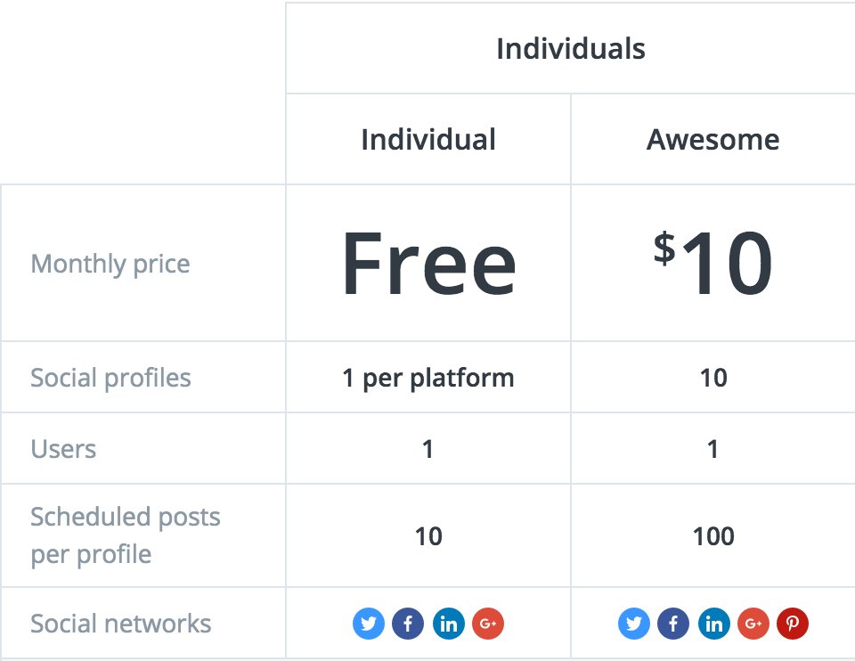 It depends on your needs. If you only run one website like me, the free version fits like a glove! It lets you select up to 10 different profiles in 5 different networks, as follows: