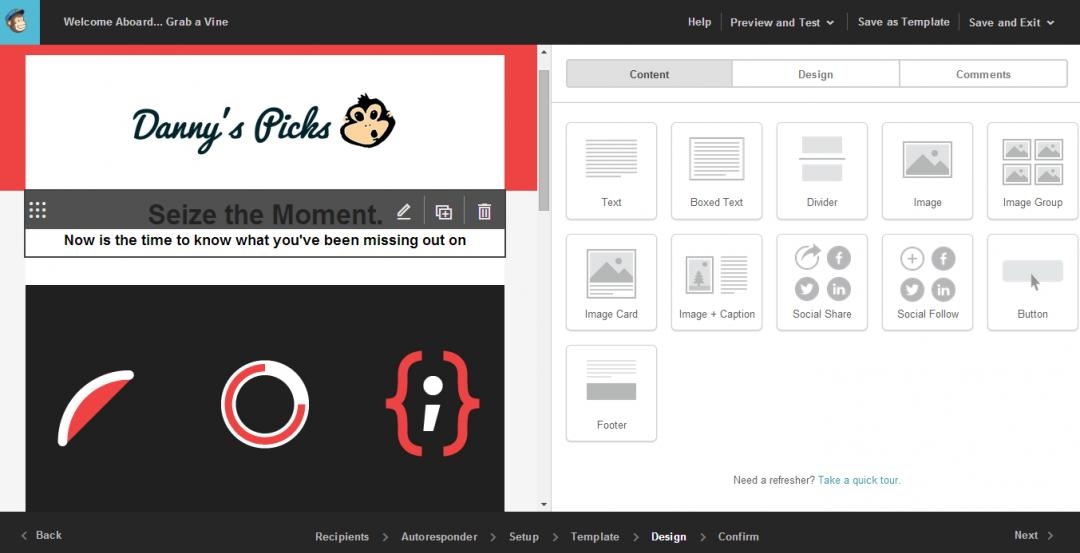 The set up is just ridiculously easy. Just Grab and drop anything you want. It does not make your computer lag or leave you with a funky bug after messing around with it (happened to me too many times on AWeber).
