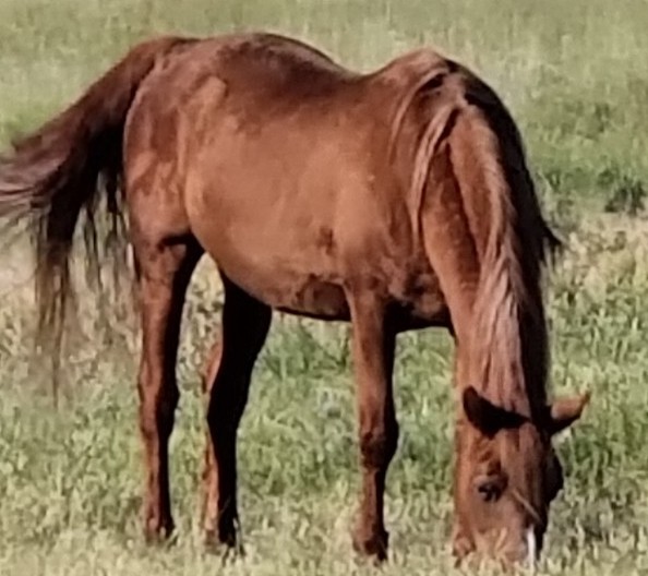 This is "Mocha" now purebred Quarter Horse. She has come along way and is in training to haul my butt around on small endurance rides, which she wants me to ride her. Shes gentle with me and caring. I feel like she knows I am fragile.
