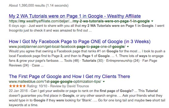- It enables me to get rank in Google. Creating blogs here at WA allow you to rank in Google thus opening the way for you to get future referrals. Below is an example of my previous blog that ranked on page 1.