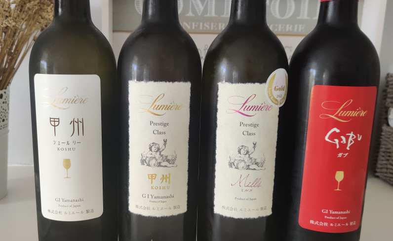 Lumière Prestige : only high quality Koshu grapes are used for these wines. They are aged in barrels. It is a wine with a plump taste that harmonizes the sweet aroma of fruits such as citrus fruits and Japanese apples, the flavor of vanilla and pleasant acidity.