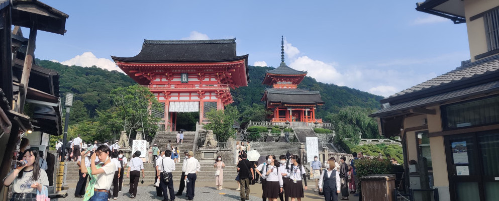After a walk through the famous shopping alleys (Kiyomizu-michi, Ninenzaka and Sannenzaka), you will reach this gigantic Buddhist space. Be careful, these alleys will lead you thirteen meters above the ground! This temple (Kiyomizu-dera Hondo) was built in 780 and rebuilt in 1633 after a fire destroyed it.