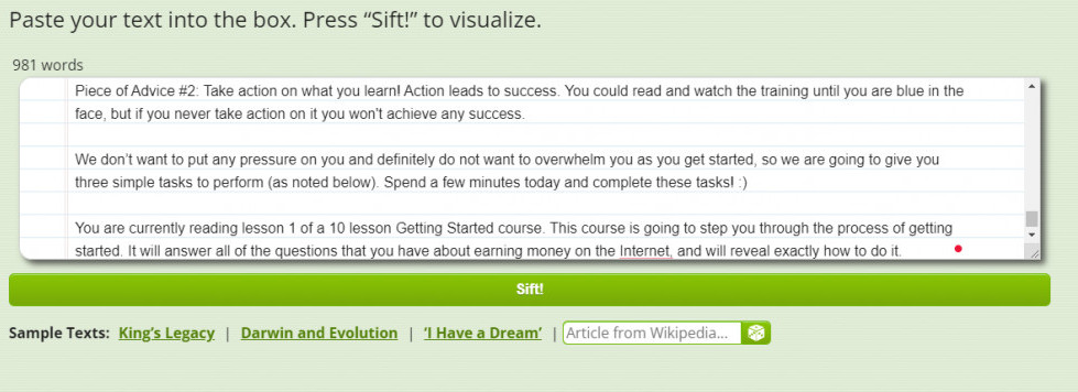 Here, I added some text from lesson 1 of the Online Entrepreneur Course.