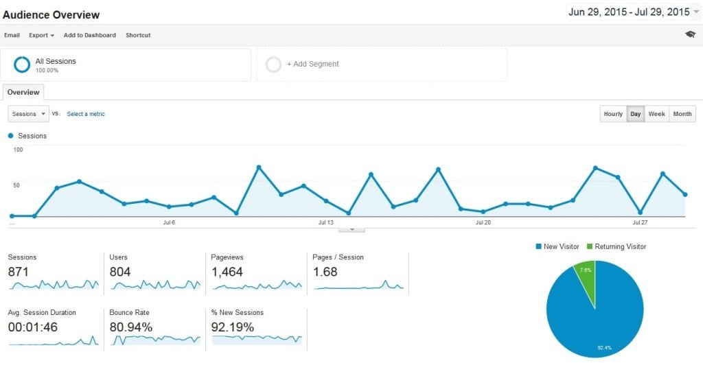 July:- New visitors was 92.4% and Returning visitors was 07.6%