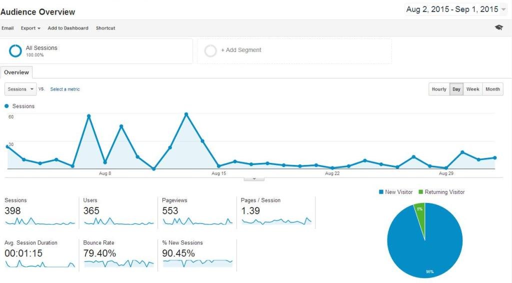Aug:- New visitors was 95% and Returning visitors was 05.0%
