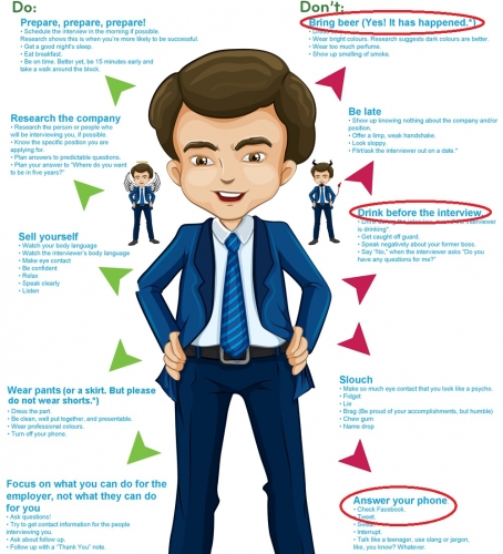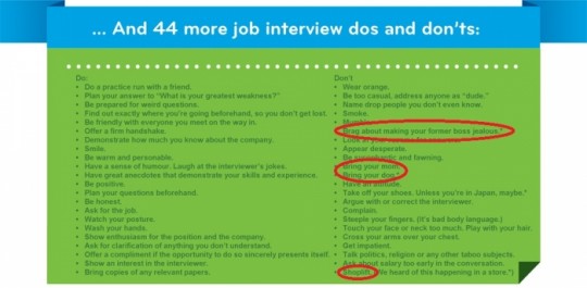 Although I show little to no interest, one email did catch my eye. I'm a sucker for an infographic and it had one about the do's and don'ts during an interview. See below: