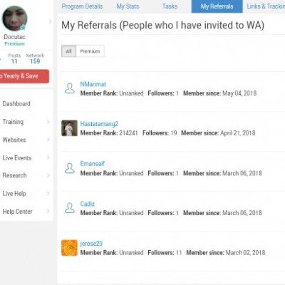 But 5 referrals with no upgrade is normal. This other member on WA has 123 referrals and still no upgrade: 123 come with me - Latest Wealthy Affiliate referral results. Personally I have 45 referrals right now with no upgrade. So maybe eventually one of them will come back, but who knows