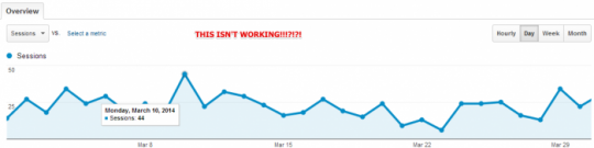 Your new best friend is the traffic pleateau. If your Google Analytics chart is starting to look like stairs or a stock-chart that you'd like to invest in, then great! but don't be alarmed if your traffic goes up, then levels out, then goes down again, then goes up again. It happens. Google can be a fickle lover, but a loyal one in the end. Soon you'll be getting frustrated that you are stuck on "only 200 visits a day" when just a few months ago you were wondering why people only visited when you hit the share button.
