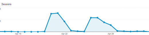 When a site is very new, you'll only get visitors when you share posts. Your Google Analytics chart will look crazy. Maybe something like this: