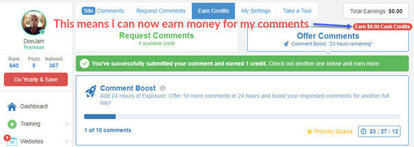 Plus I'm also getting community credits which I can use to request comments from Wealthy Affiliate members for my own blog posts on my websites. So it's a definite win-win situation here with the Site Comments platform. Definitely another great innovation from Wealthy Affiliate co-owners Kyle and Carson, and another of the multiple ways to make money here on WA.