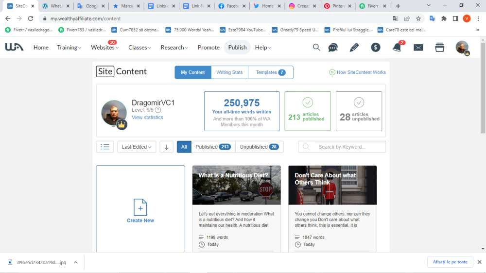 Yesterday at 19.00 I reached 250,000 words on WA, on SiteContent.