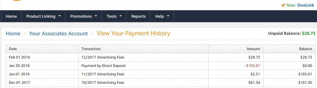 You can see that a $183.81 was paid by Amazon to my bank account.