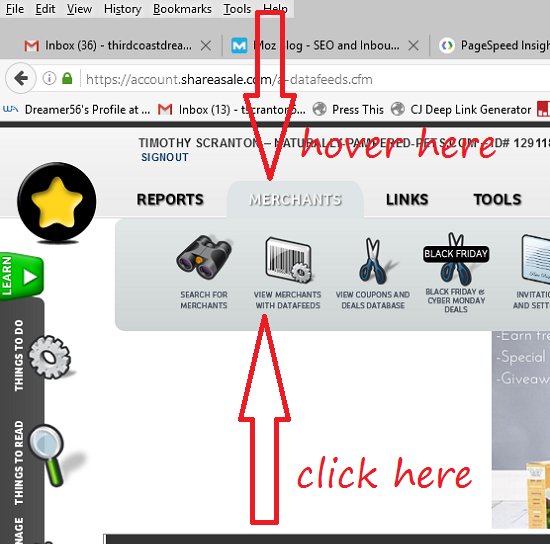 WOOHOO you have been approved . Ok where is my merchant? I have been approved why can't I find them. Once again ShareASale hides things. Hover over merchants this time click on "view merchants with data feeds".