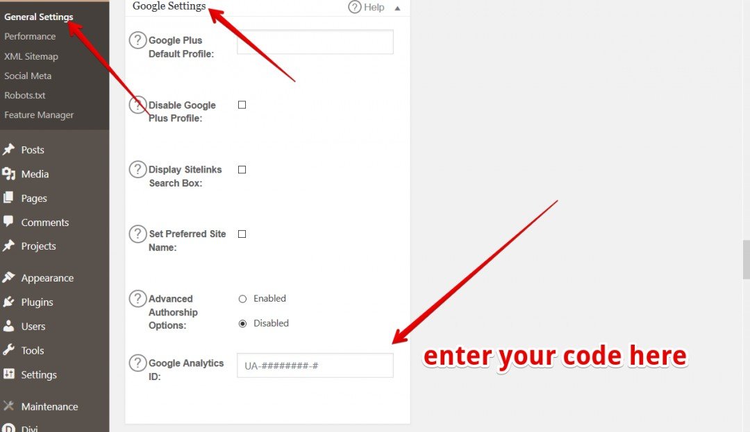 Click on the All In One SEO Plugin and go to general settings. Scroll down to Google settings and enter your I.D.