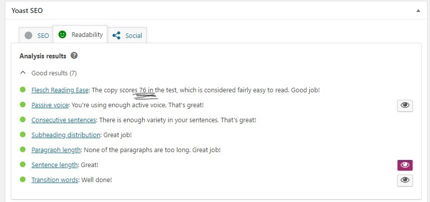 The plugin called Yoast SEO, I am not going to talk about this plugin in general. All I want to say this plugin is helping me to fix my content and show me stuff maybe I didn't or don't or even won't notice. After all, English is not my first language.