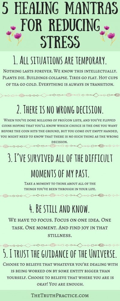 Just to name some is yoga, breathing, and meditation is the three that comes to mind. There may be other things that can be used to reduce stress but those are the three that have been recommended to me.