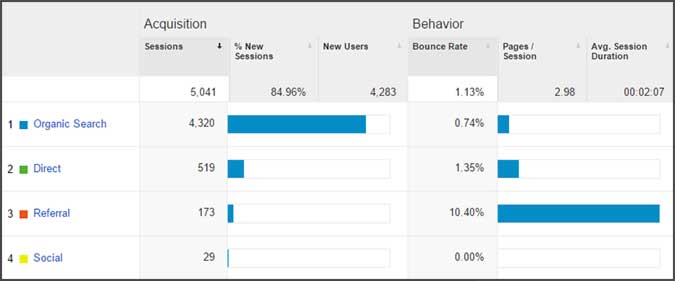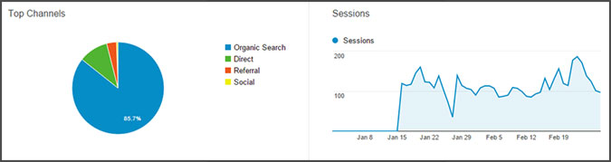 I only have 33 organic search sessions in my Google Analytics aquisition, I'm amazed at how many you have! The Organic Search is the bottom of my traffic sources :(