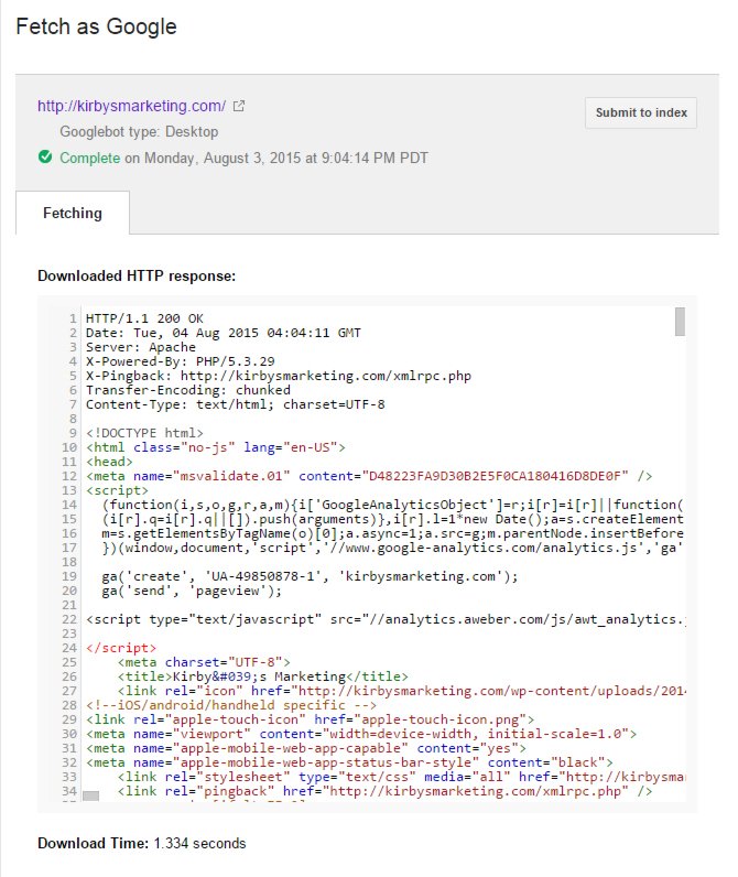 Now, following the steps in the email, I "fetch as google". And this is what I get: