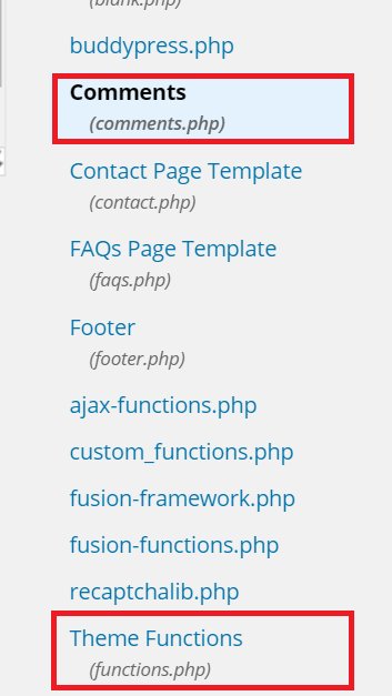 Now, we will be making code changes to two files, comments.php and function.php.