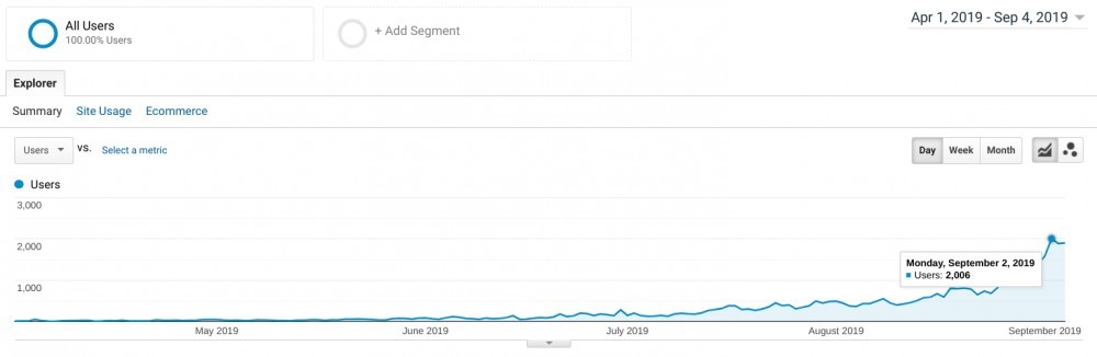 So it took 5 months to go from basically zero traffic to over 2,000.