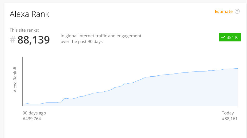 The beginning of the graph is June and the website was ranked 439,764. In just a few months it's ranked 88,139.