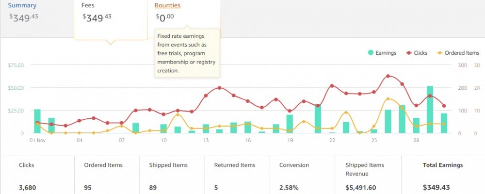 As you can see below it made me $350 this month and got a total of 7,000 views on Youtube, with 3680 clicks to Amazon.