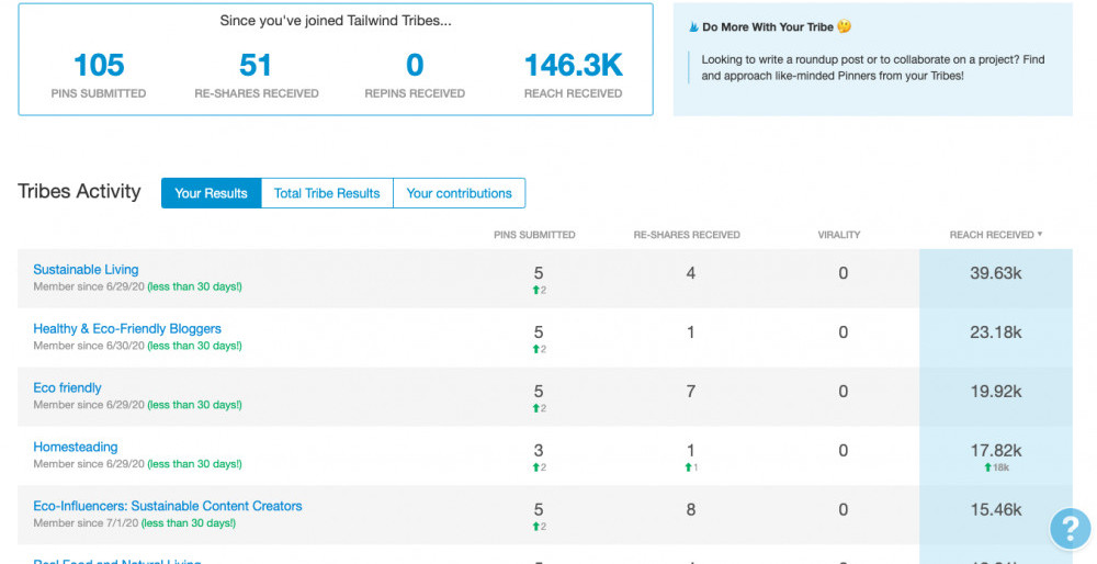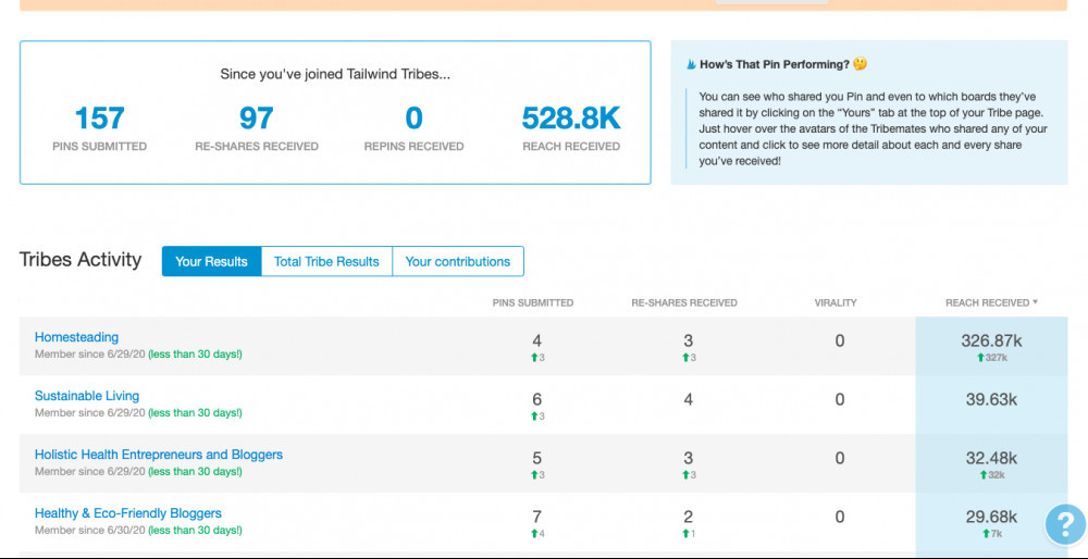 I have only shared 6 of my pins but to many different tribes. As you can see... In a week or so I have reached nearly 150,000 people!! And I really only log into it for about half an hour in the morning and have not been doing this consistently.