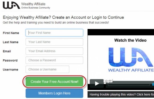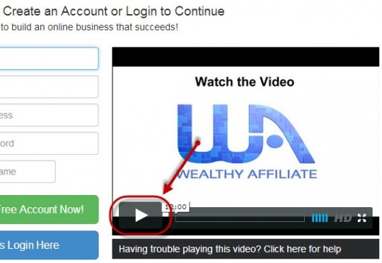 If the pop up screen showed up before you were able to hit the green tab as described on Step 1, then you have an option to view the Wealthy Affiliate video. You can go ahead and click Play so that you can watch a very short video of Wealthy Affiliate.