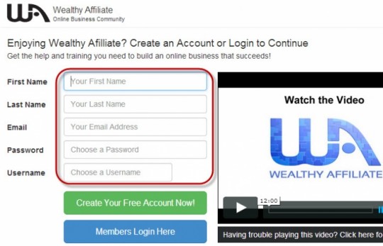 Go ahead and fill out your First Name, Last Name, your best Email Address, Password and a Username that you'll be using once logged into the Wealthy Affiliate community.