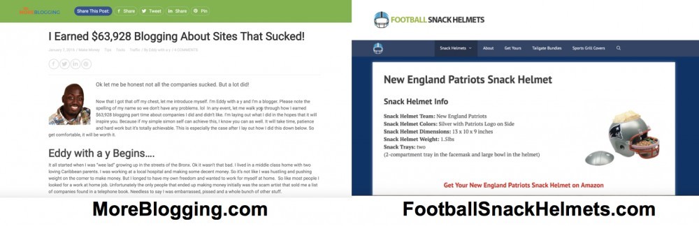 Have a peek at a recent website I built and I am here at Wealthy Affiliate, moreblogging.com. This is a site I started recently that is really starting to gain some good traction and is going to really profitable come this fall. Also, my fellow Wealthy Affiliate buddy Jay (magistudios), has a website called footballsnackhelmets.com that literally sells, football snack helmets. This website has been racking in the income for the last 7 years for Jay, like clockwork.