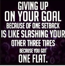 "Giving up on your goal because of a setback is like slashing your other 3 tires because you got a flat"