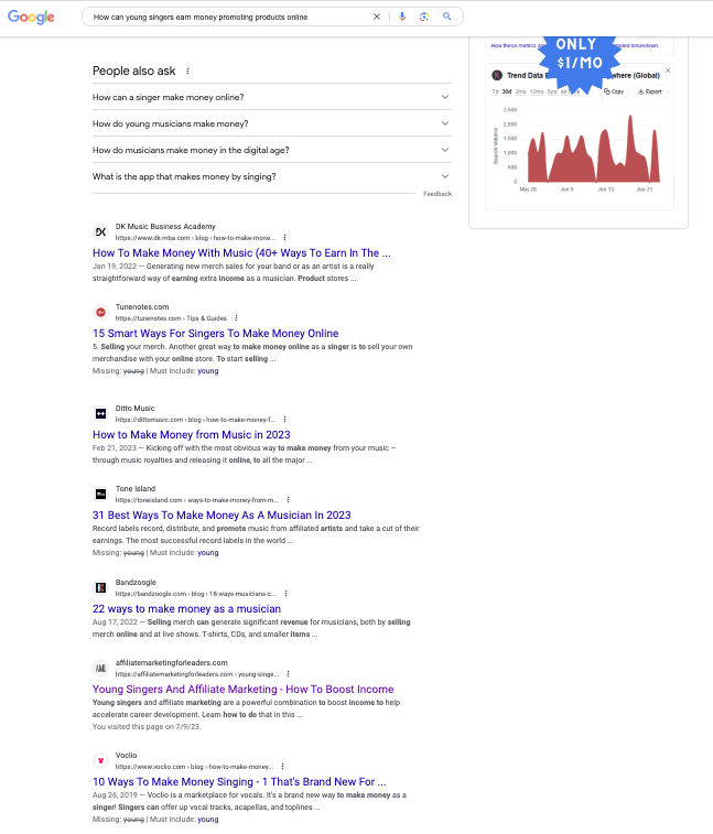 I wrote an article for my website to help young singers use affiliate marketing to boost their income. The keyword I used was, "Young Singers And Affiliate Marketing". And it ranked at #1 on Google for this keyword in under two days. I was ecstatic! Until I read Partha's response.