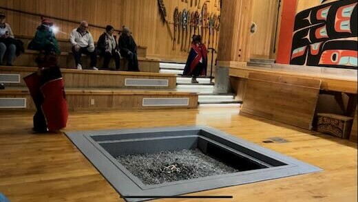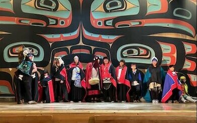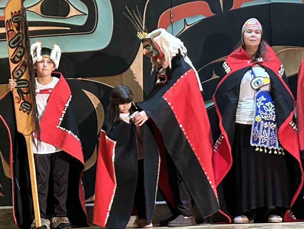 Several Tlingit clans put on a show for us inside a traditional Tlingit community home.
