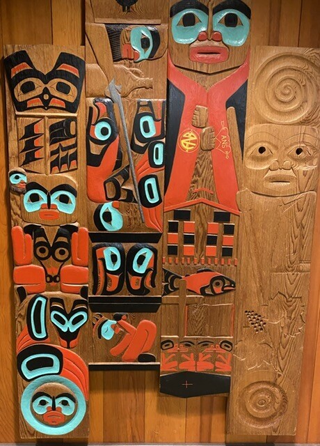 The main room is shown below where families slept on the steps surrounding a warm fire. Tlingit families today are absorbed into the local community and live in regular homes.