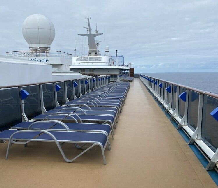If this was summer, these decks would be filled with guests sunbathing. With cooler weather, they are empty now and will remain empty for the whole cruise.