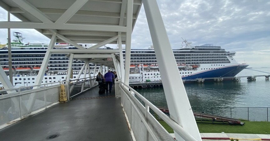 Our adventure began at the Carnival Cruise terminal in Long Beach. It’s that domed structure next to the original Queen Mary ship. Everything went smoothly and we were soon walking the gangway into the ship.