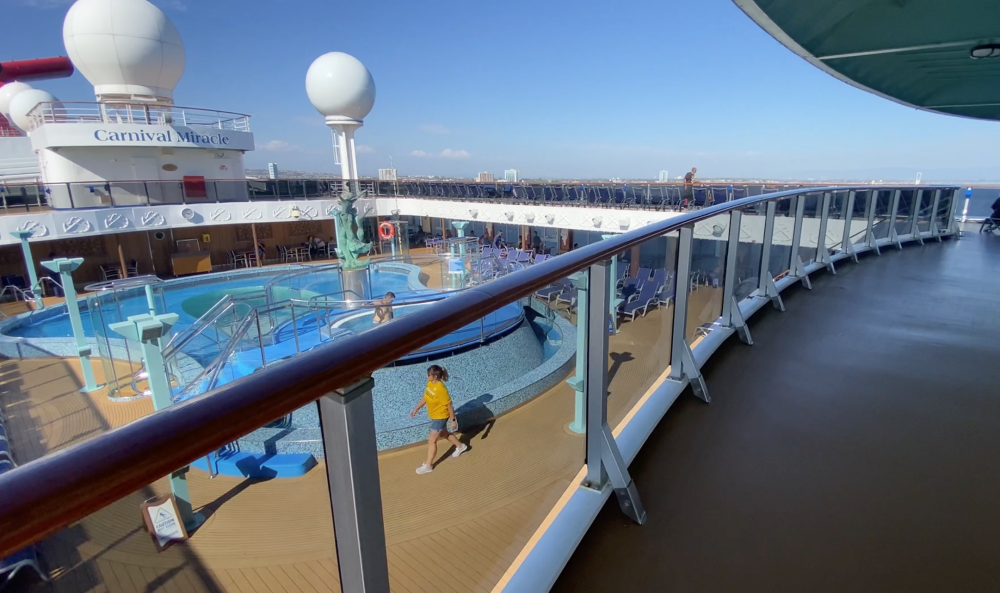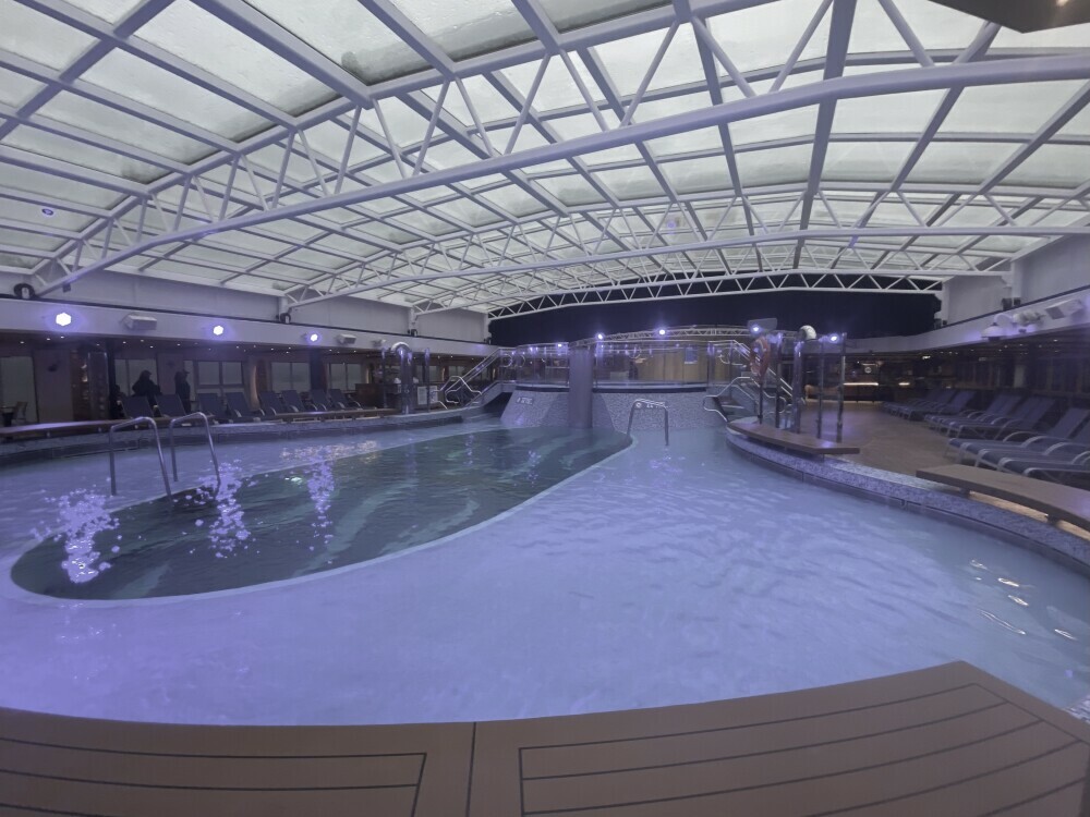 Although this outdoor pool is superb, Carnival has us covered literally with another pool that has a retractable roof below.