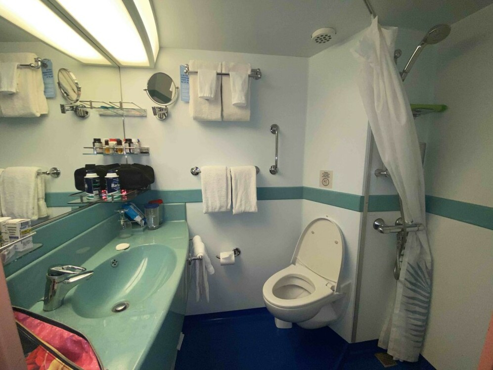 I’ve never read a cruise review where they show pics of the cabin bathroom. And why not? I found out that this bathroom was larger than the one we had on a Cunard ship. That was surprising.
