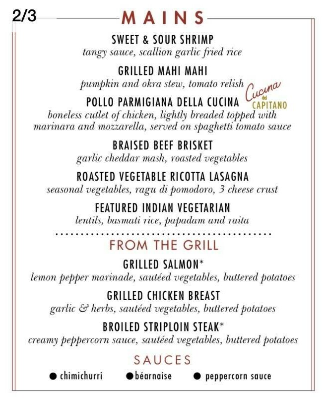 FROM THE GRILL section was the same every day. I often alternated between the salmon and the steak, medium rare.